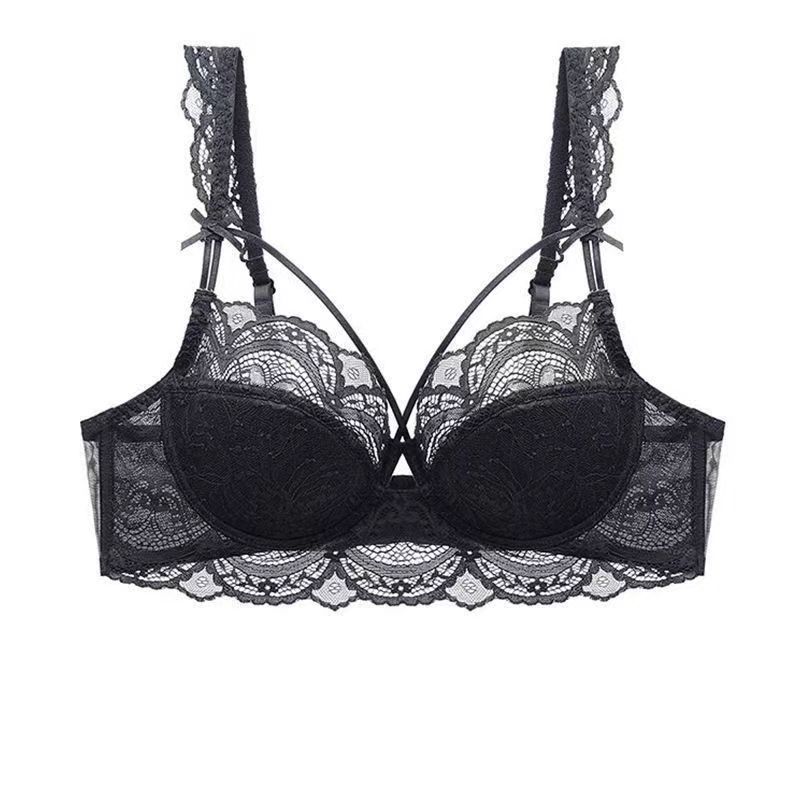 Pure Desire Lace Plus Size Sexy Lingerie for Women, Thin Push-Up Bra Set for Side Breast Collection, Minimizing Large Bust-SLIQIA